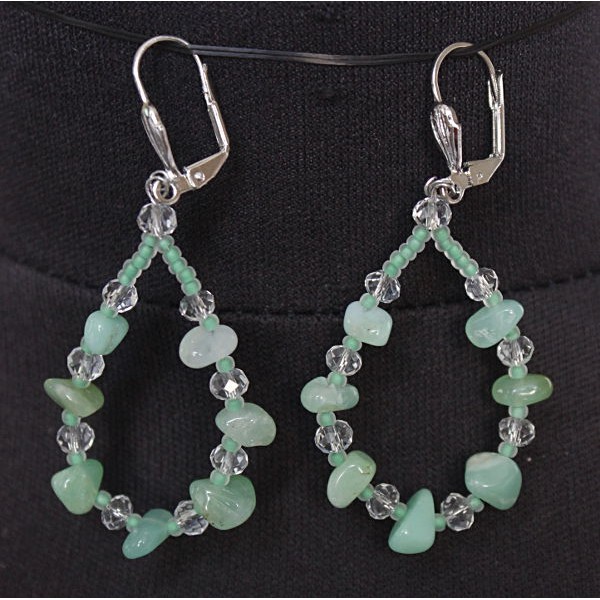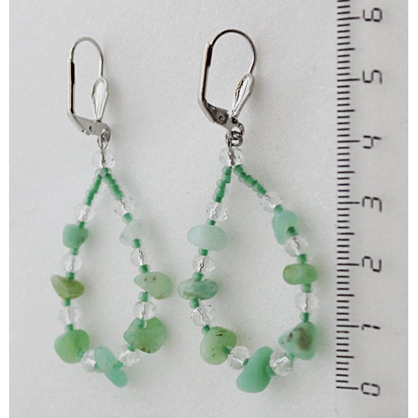 Серьги из хризопраза, галтовка+хрусталь, "воздушная капля"