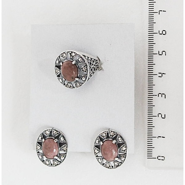 sg42-00042, sg42, sg42-, 42-, 42-00042, кольцо_и_серьги_из_родонита, овал_10х8мм, родонит, серьги_родонит, овал_10х8