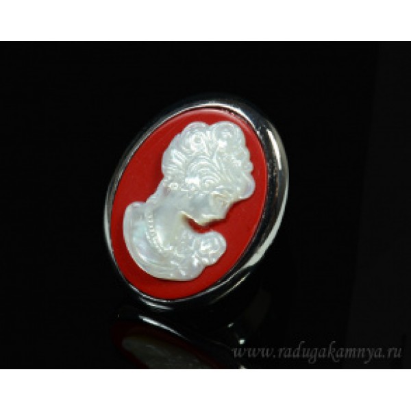 Кольцо с перламутром "Камея" овал 27*34мм цвет красный