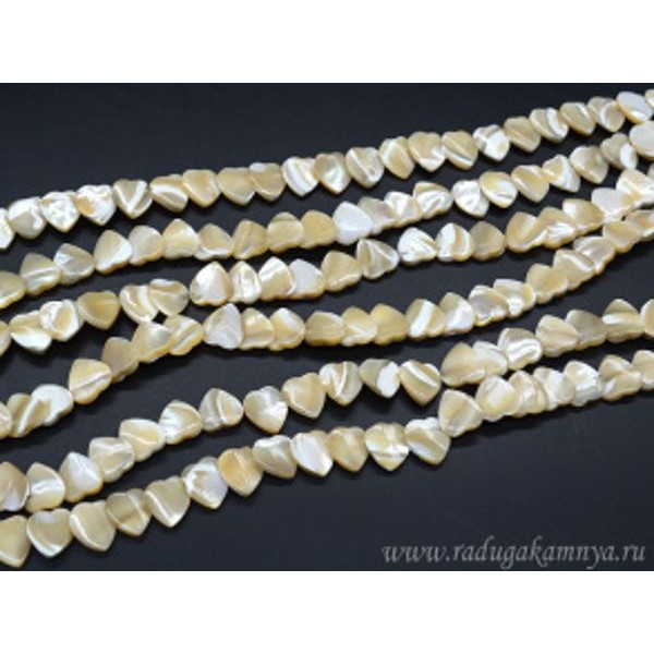 Бусины из перламутра сердце 10*10мм, цвет кремовый, 37см, 44 бусины