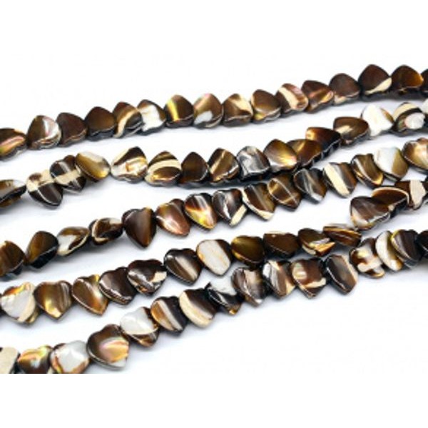 Бусины из перламутра сердце 10*10мм, цвет шоколадный, 39см, 48 бусин