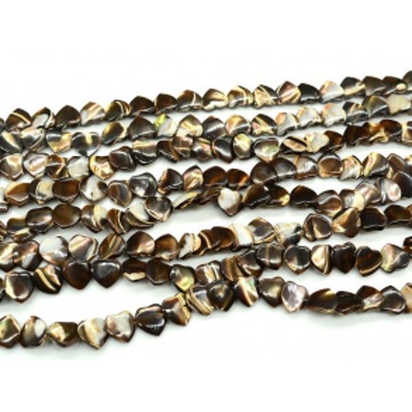 Бусины из перламутра сердце 12*12мм, цвет шоколадный, 39см, 37 бусин