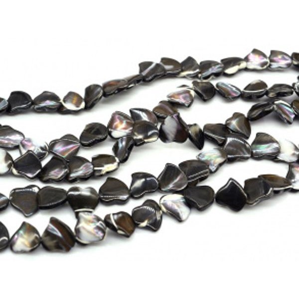 Бусины из перламутра сердце 13*13мм, цвет черный, 38см, 32 бусины