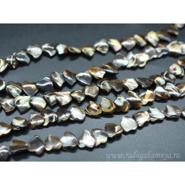 Бусины из перламутра сердце 13*13мм, цвет шоколадный, 39см, 33 бусины