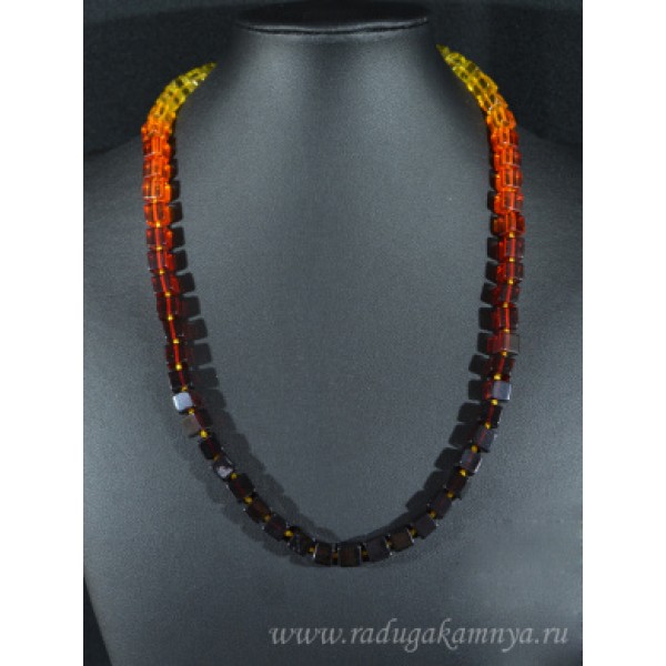 Бусы янтарные кубик 7мм радуга лимонный, св.вишня, вишня, 54см