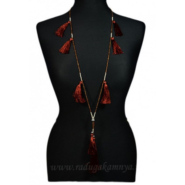 Колье " Кисточка " с бисером, цвет бордо, 96см.