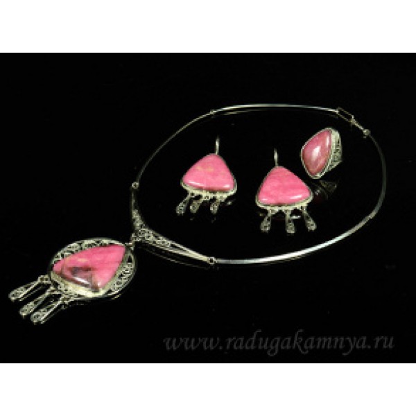 Колье, Кольцо и серьги с родонитом " Царевна ", 48см
