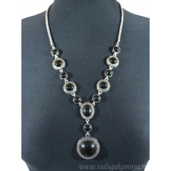 Кулон из агата черного, круг 12мм, оправа "балерин..