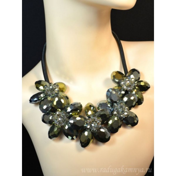 bu56-00776, bu56, bu56-, 56-, 56-00776, бусы_с_цирконами, 5_цветков, циркон_зеленый, бусы_циркон_зеленый