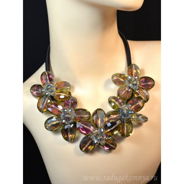 Колье с цирконами 5 цветков 55мм цвет розово-зеленый, 48см
