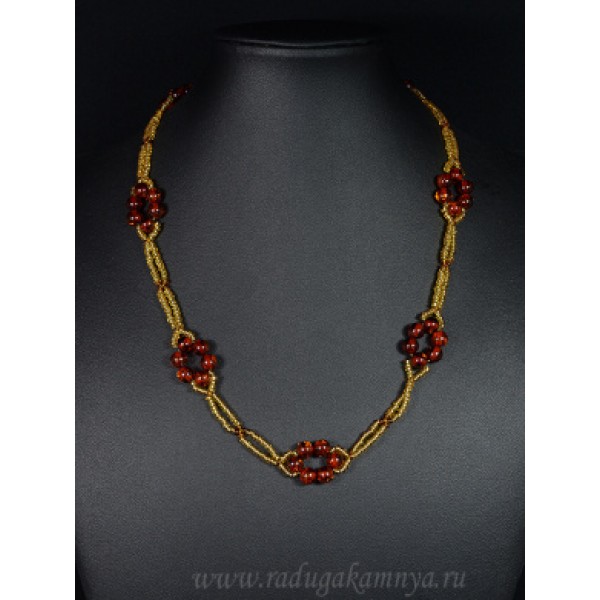Колье с янтарем и бисером "круг из шариков" коньячный, 51см