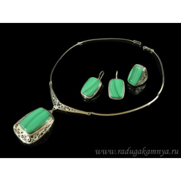 Кольцо и серьги с малахитом "Рыбка" 28*33мм..