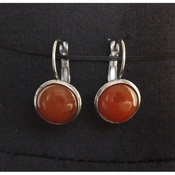 Серьги из сердолика, круг12мм, оправа "балерина"
