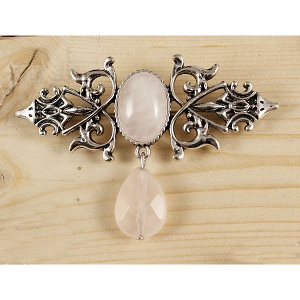 Брошь из кварца розового "вензель", основа 70х2.4мм, овал 18х13мм, подвеска кварц розовый