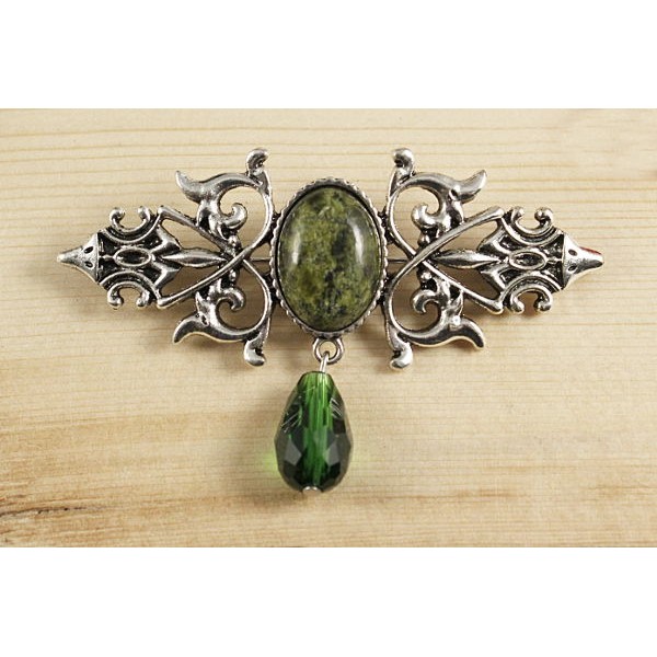 Заколка из змеевика, зажим для волос, цвет ант. серебро, 20мм