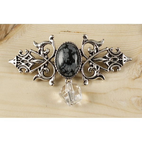 Заколка (зажим для волос) из обсидиана снежного, к..
