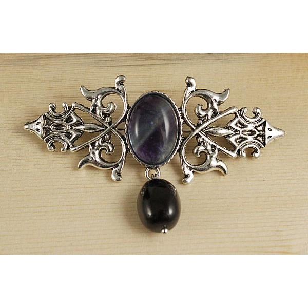 Брошь из флюорита "трюмо", овал 18х13мм, со стразами и подвесками из флюорита