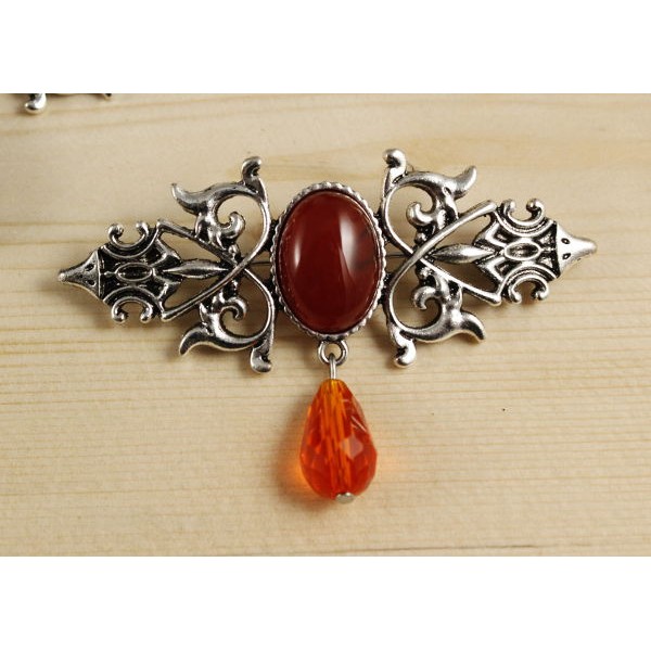 Брошь из сердолика "вензель", основа 70х2.4мм, овал 18х13мм, подвеска оранжевая