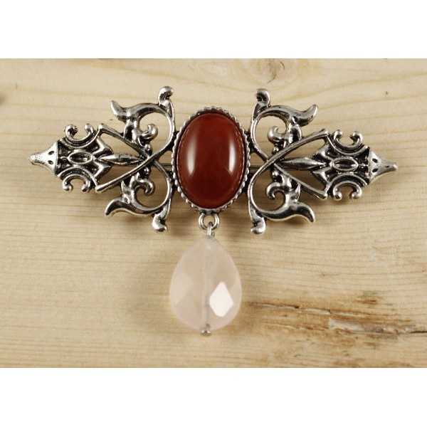 Заколка из яшмы красной и розовым кварцем 6см, кру..