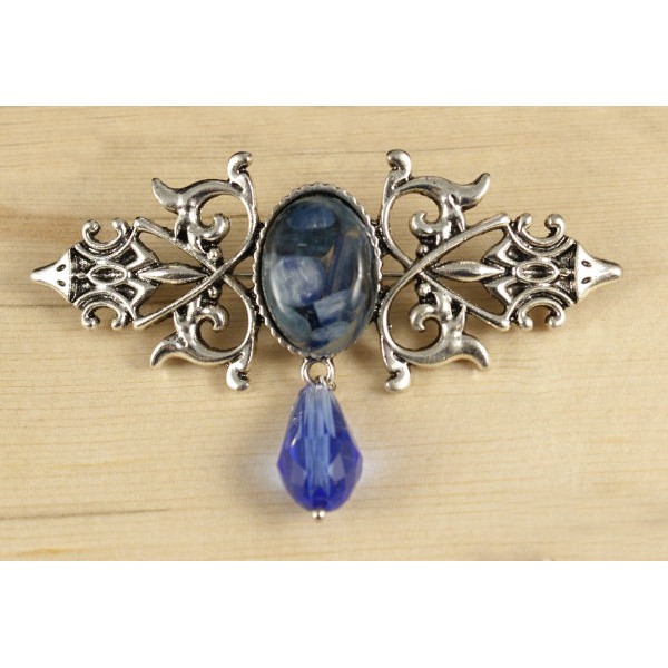Брошь из кианита (кабошон-мозаика) "вензель", основа 70х2.4мм, овал 18х13мм, подвеска синяя
