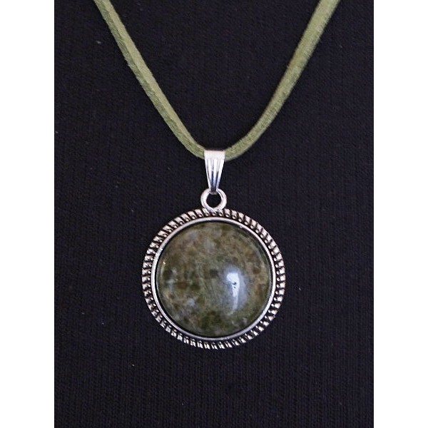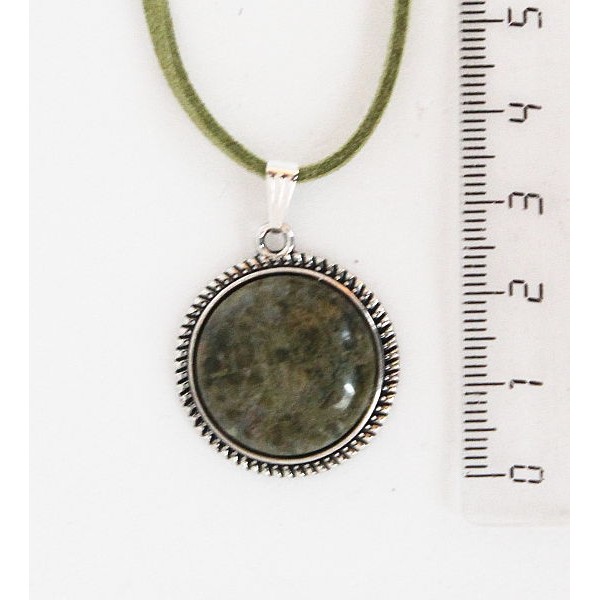 Кулон из унакита, круг 20мм, оправа с насечками
