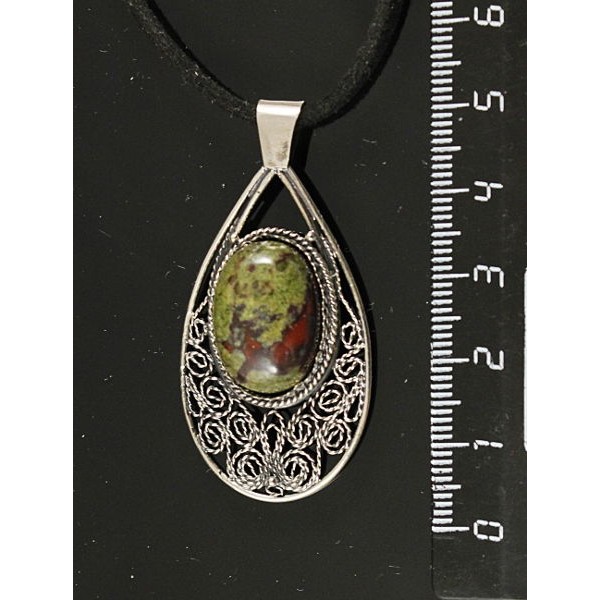 Кулон из унакита, филигрань, ручная работа, камень овал 18х13мм