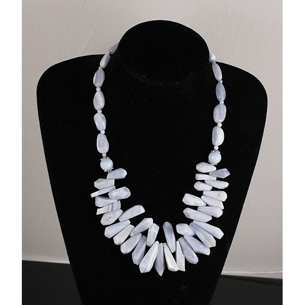 Колье из агата голубого (сапфирин) 50см, длинные капли + мятый овал + шарик 4мм