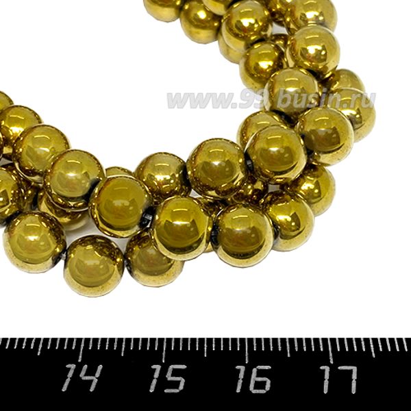 Натуральный камень ГЕМАТИТ бусины круглые 8 мм, цвет античное золото, около 40 см/нить