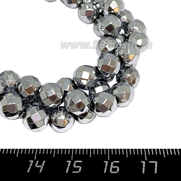 Натуральный камень ГЕМАТИТ граненый, цвет серебро 8 мм, 40 см/нить