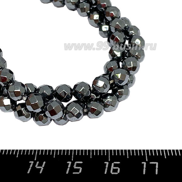 Натуральный камень ГЕМАТИТ граненые, цвет натуральный 6 мм, 40 см/нить