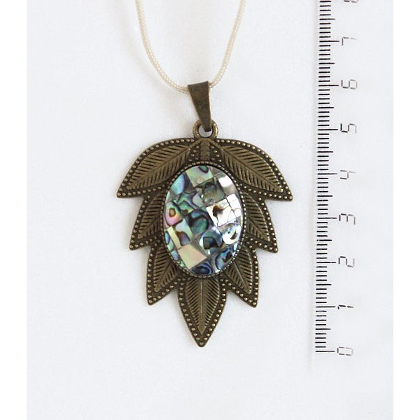 Кулон из бирюзы (иск.), овал 25х18мм, "лист", цвет бронза