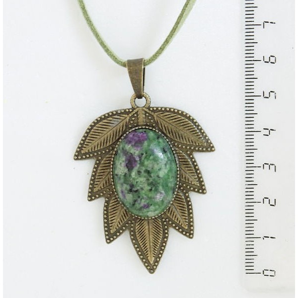 Кулон из хромдиопсида (кабошон-мозаика), овал 25х18мм, "лист