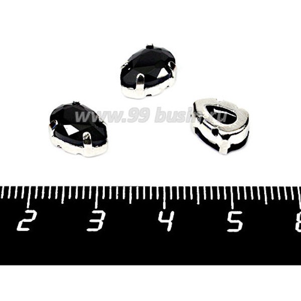 Стразы стеклянные пришивные в латунных цапах Капелька 10*7 мм цвет глубокий чёрный, 1 штука