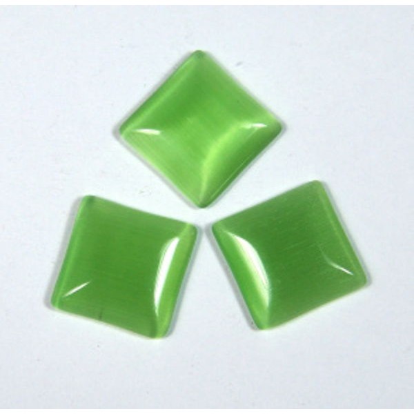 Кабошон кошачий глаз(иск.) зеленый квадрат, 14*14*4,5мм.