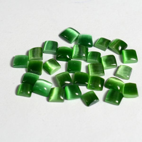 Кабошон кошачий глаз(иск.) квадрат зеленый, 3,2*3,2*2мм, уп. 100шт.