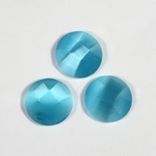 Кабошон кошачий глаз(иск.) круг гр. голубой, 10*10*4мм.