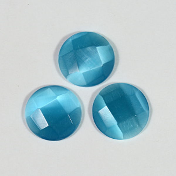Кабошон кошачий глаз(иск.) круг гр. голубой, 14*14*4мм.