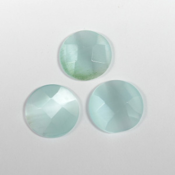 Кабошон кошачий глаз(иск.) круг гр. нежно-голубой, 18*18*5мм.