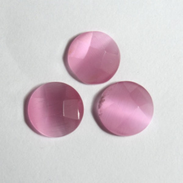 Кабошон кошачий глаз(иск.) круг гр. розовый, 14*14*4мм.