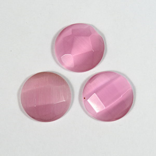 Кабошон кошачий глаз(иск.) круг гр. розовый, 15*15*4мм.