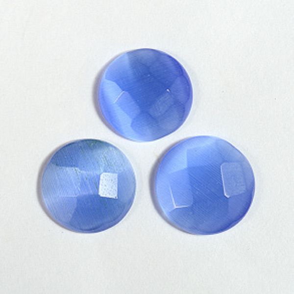 Кабошон кошачий глаз(иск.) круг гр. синий, 14*14*4мм.