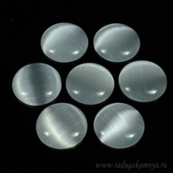 Кабошон кошачий глаз(иск.) круг, 20*20*4мм. белый