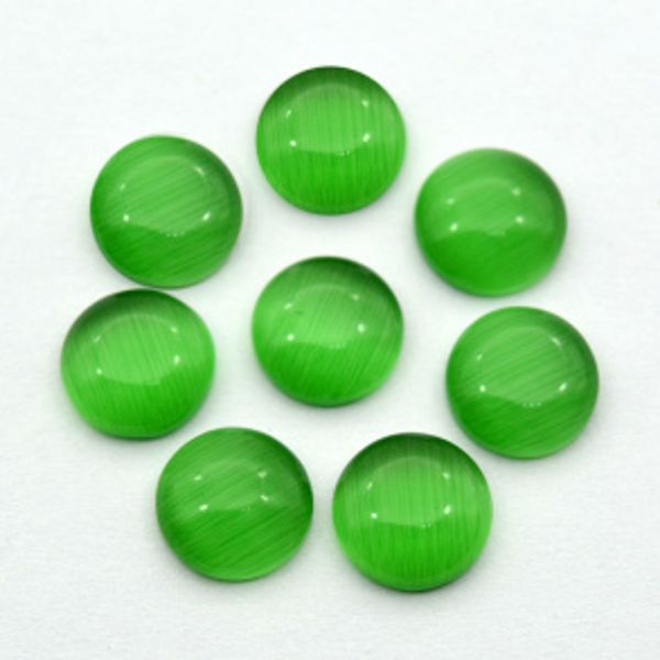 Кабошон кошачий глаз(иск.) круг, 8*8*3мм. зеленый