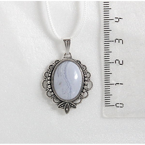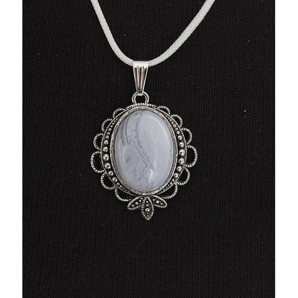 Кулон из агата голубого (сапфирин), овал 18х13мм, оправа "трилистник"