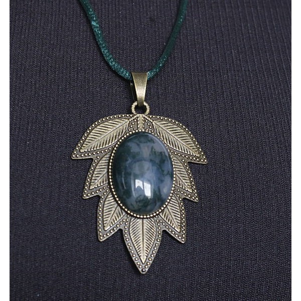 Колье-кулон из яшмы зеленой, овал 25х18мм, оправа медальон