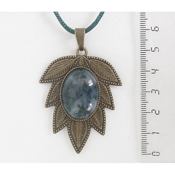 Кулон из бирюзы (иск.), овал 25х18мм, "лист", цвет бронза