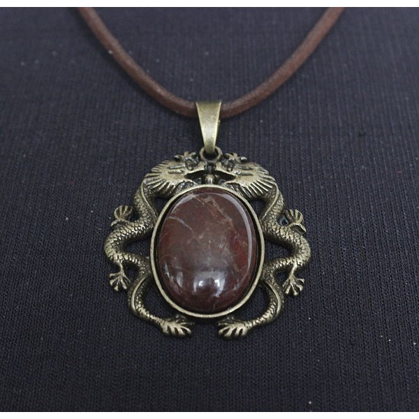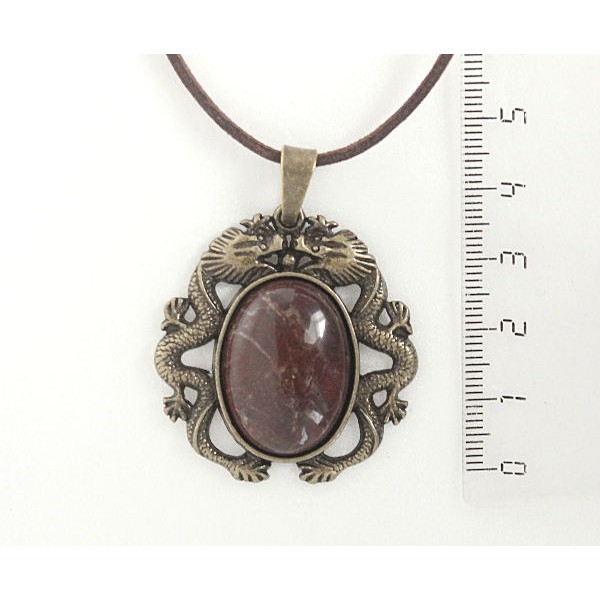 Кулон из яшмы красно-коричневой, овал 25х18мм, оправа цвет бронза "2 дракона"
