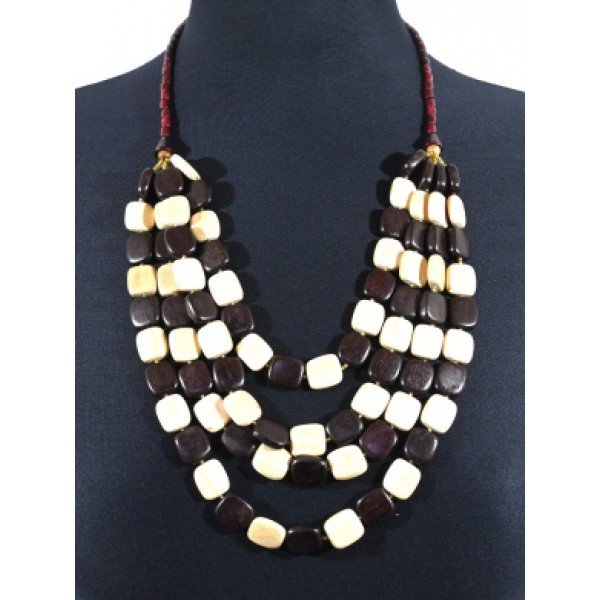 Колье из дерева 4 нити квадрат 14мм, 60см