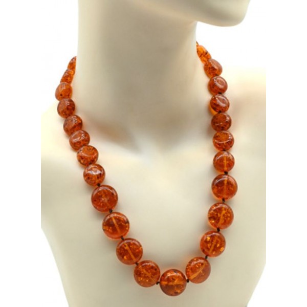 Колье из янтаря круг 15мм-19мм коньячный, 53см