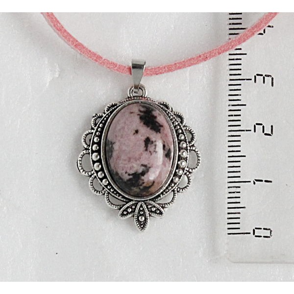 Кулон из родонита, овал 18х13мм, оправа "трилистник"